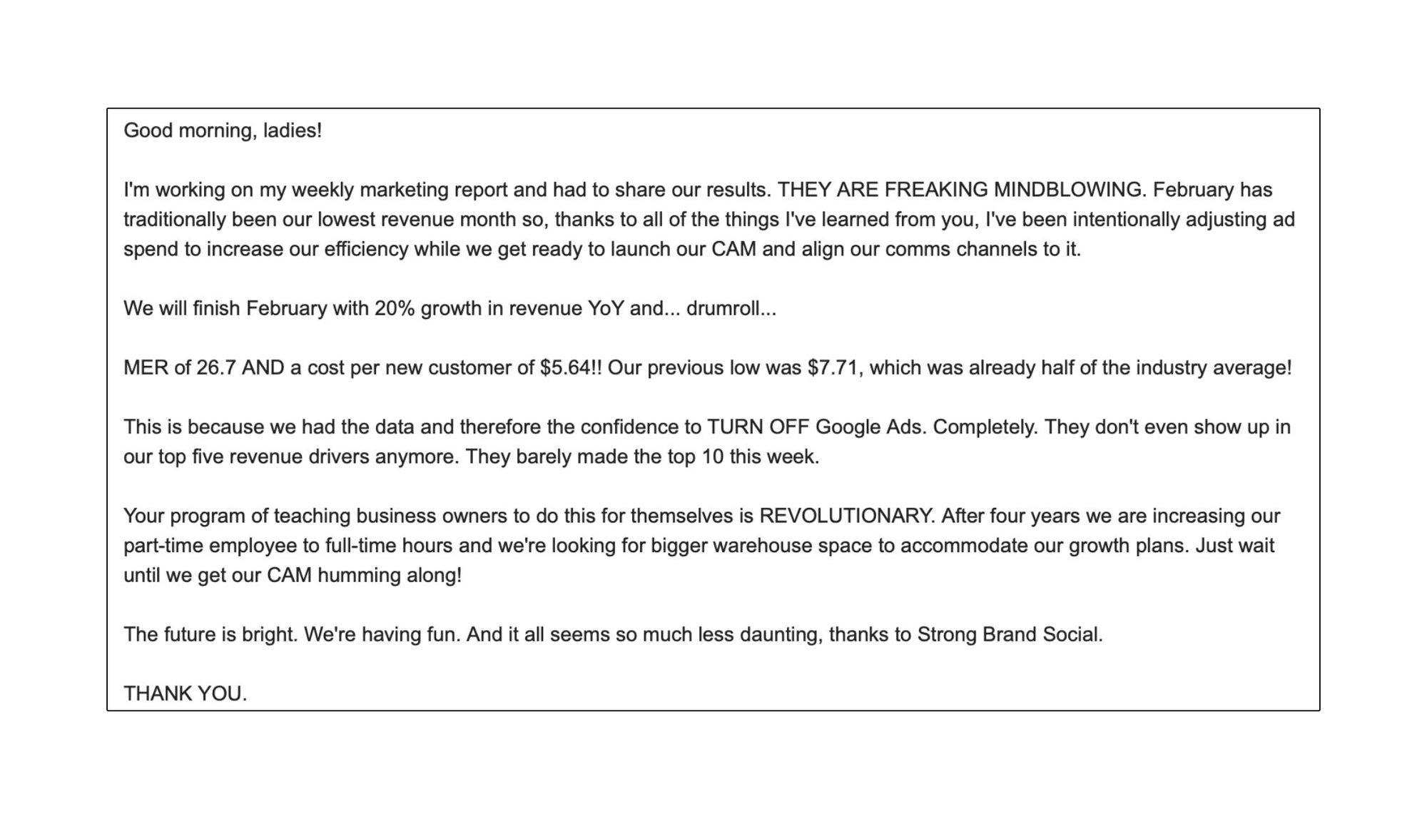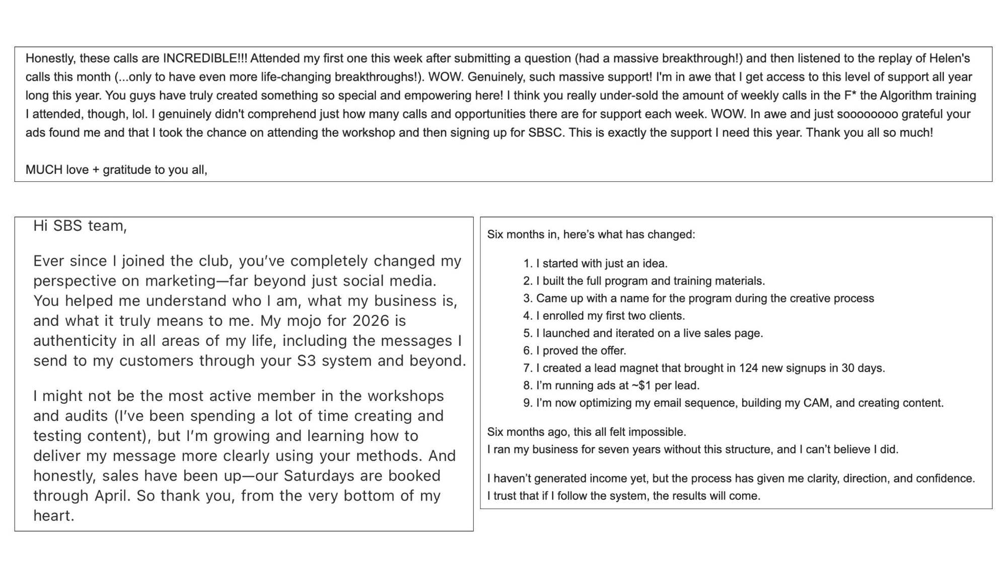 For 14 years, we’ve been developing, proving, and perfecting The S3 System™: The industry’s gold standard framework for efficient, sustainable, measurable growth from content and social media marketing. Inside Strong Brand Social Club, we help you customize it to your brand, implement it with support, and walk alongside you every day as you measure and optimize your way to your business goals. The results are accelerated revenue, reduced operational friction, lower marketing costs, and improved profit margins. Hear from a few of our members about their experience