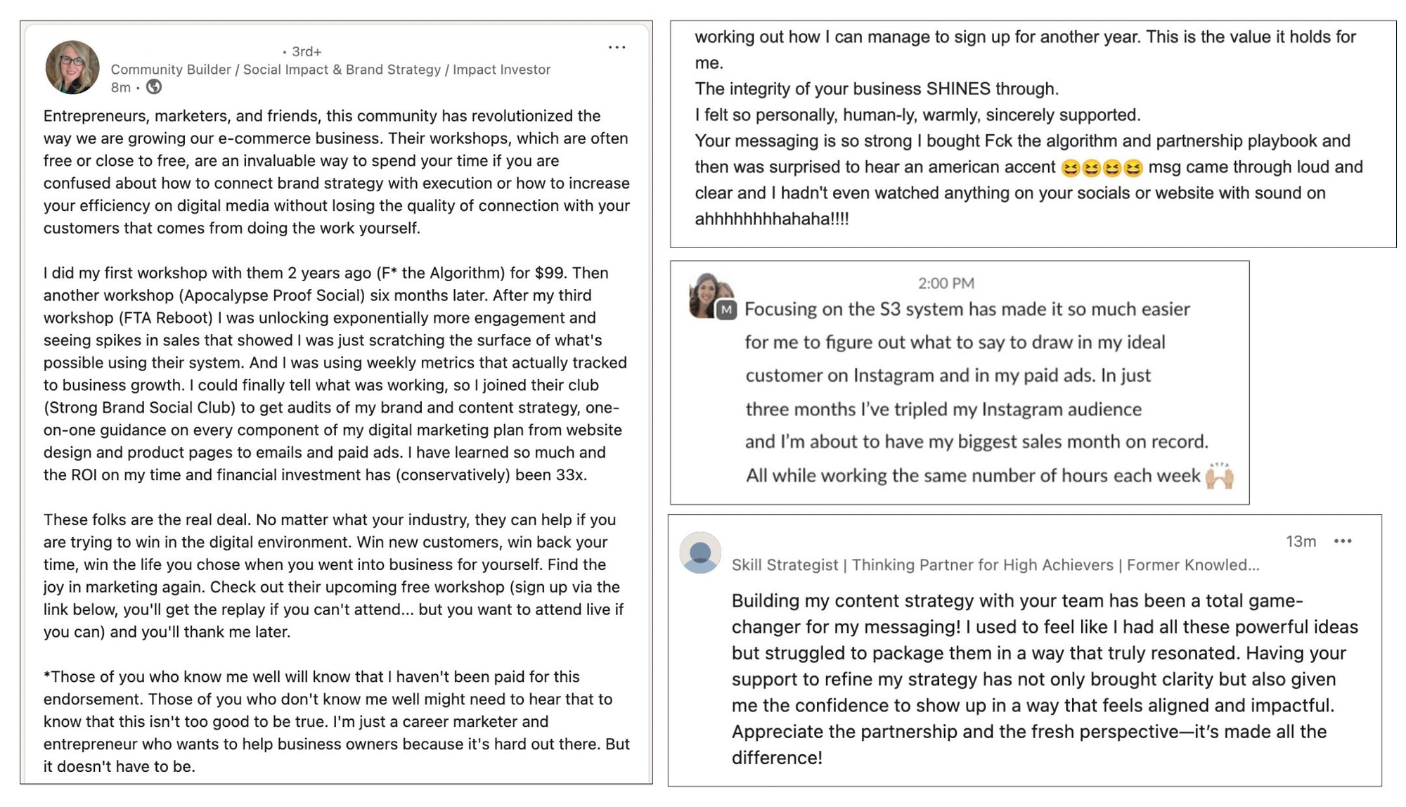 Hear from founders at ecomm, service, and B2B brands about their experience in Strong Brand Social Club and the results they accomplished with our support.